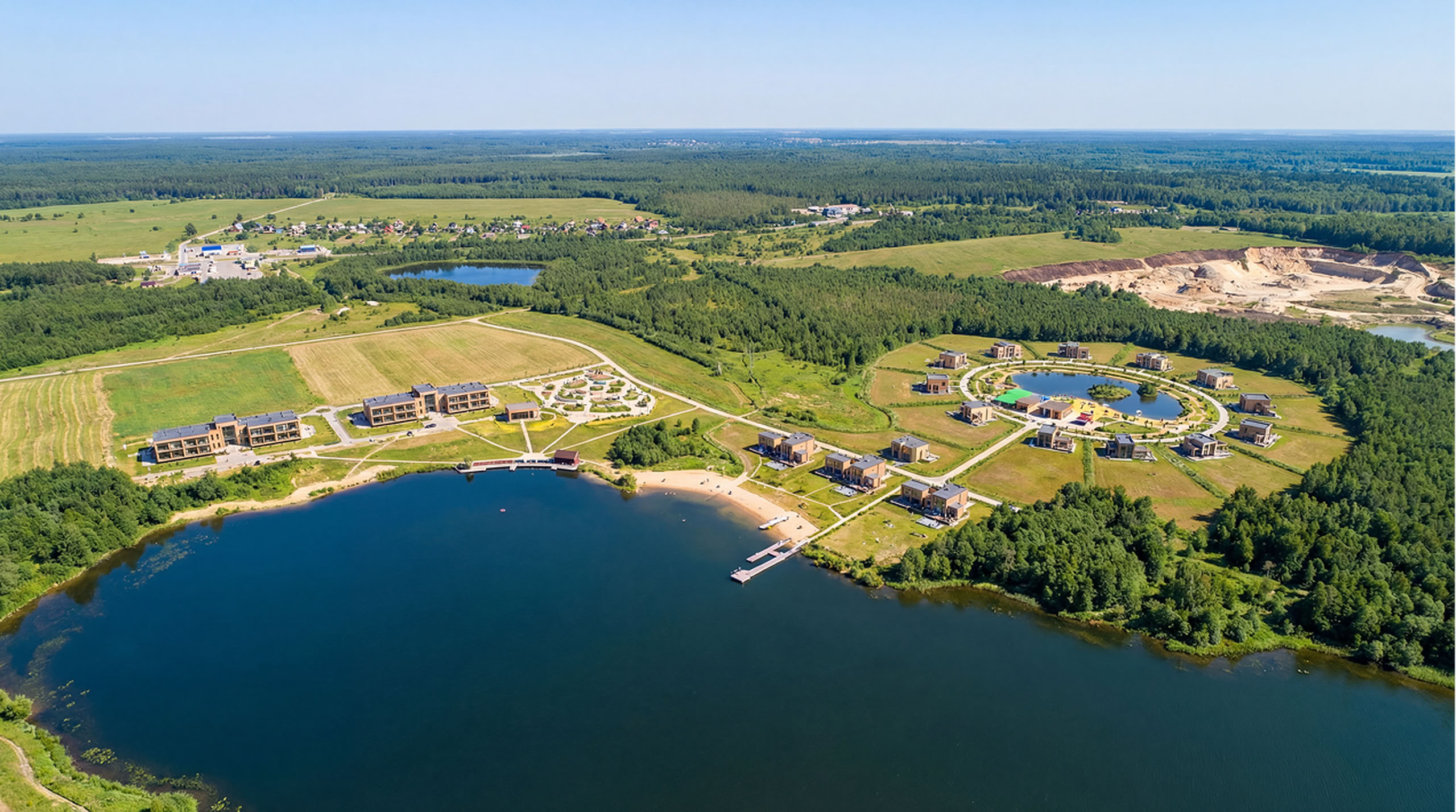 Клубный формат поселка с высоким инвестиционным потенциалом на берегу чистого природного озера. Удобное расположение: выезд на Ленинградское шоссе находится в 3 км, поэтому дорога до города и основных маршрутов занимает минимум времени.